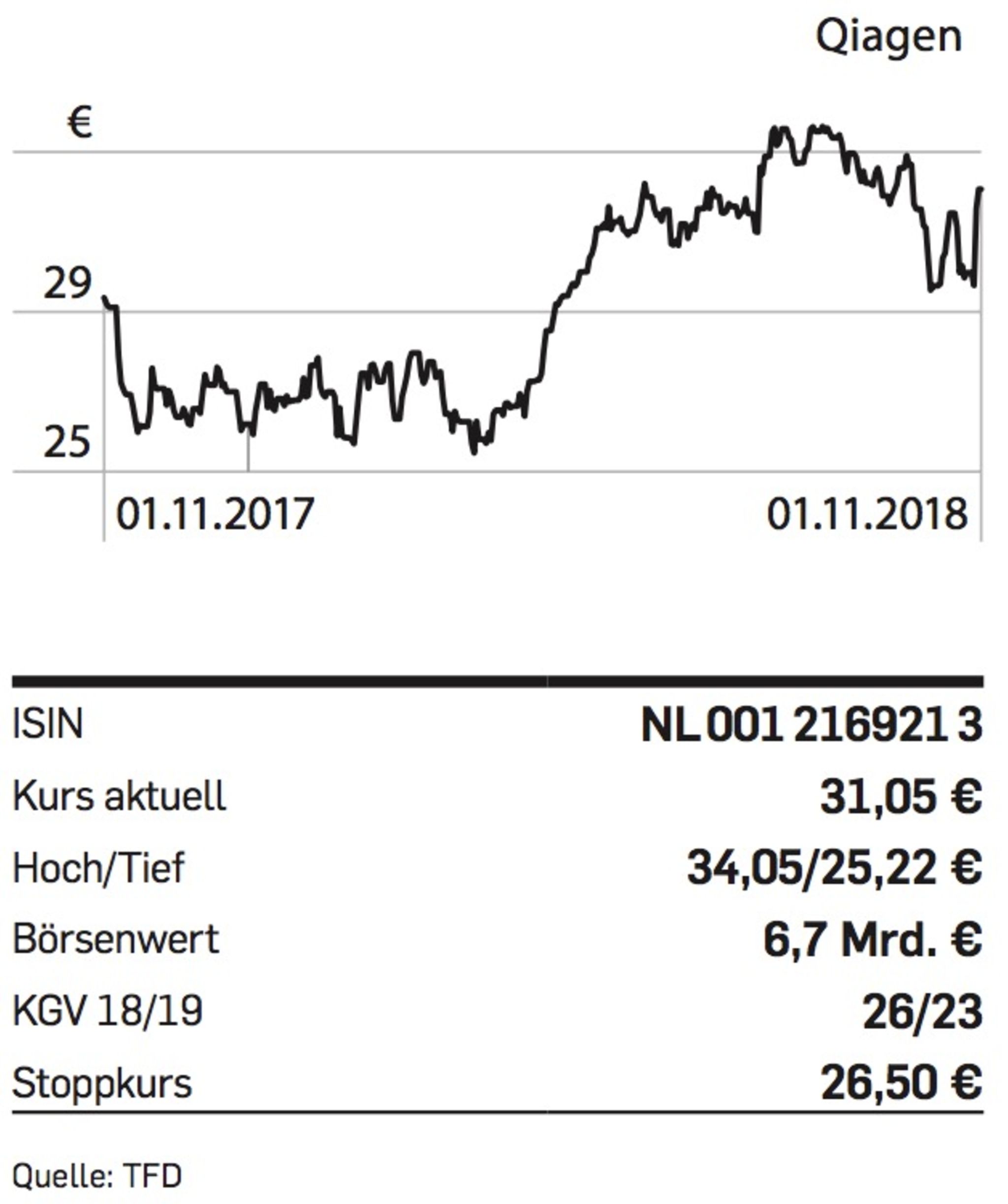Fresenius, Daimler, Continental – drei von etlichen Unternehmen, die während der aktuellen Quartalsberichtssaison mit Gewinnwarnungen für Negativschlagzeilen gesorgt haben. Ganz anders Qiagen: Die Gendiagnostik- und Biotechfirma blickt nach einem guten dritten Quartal optimistischer aufs Gesamtjahr. Beim bereinigten Gewinn je Aktie sei nun mit 1,33 bis 1,34 Dollar zu rechnen, teilte das Unternehmen anlässlich der Zahlenvorlage für das Quartal per Ende September mit. Bisher standen 1,31 bis 1,33 Dollar je Anteilschein auf der Agenda. Beim Umsatz wird weiterhin ein Wachstum von sechs bis sieben Prozent vorhergesagt. Im dritten Jahresviertel stiegen die Erlöse um 3,8 Prozent auf 377,9 Mio. Dollar.