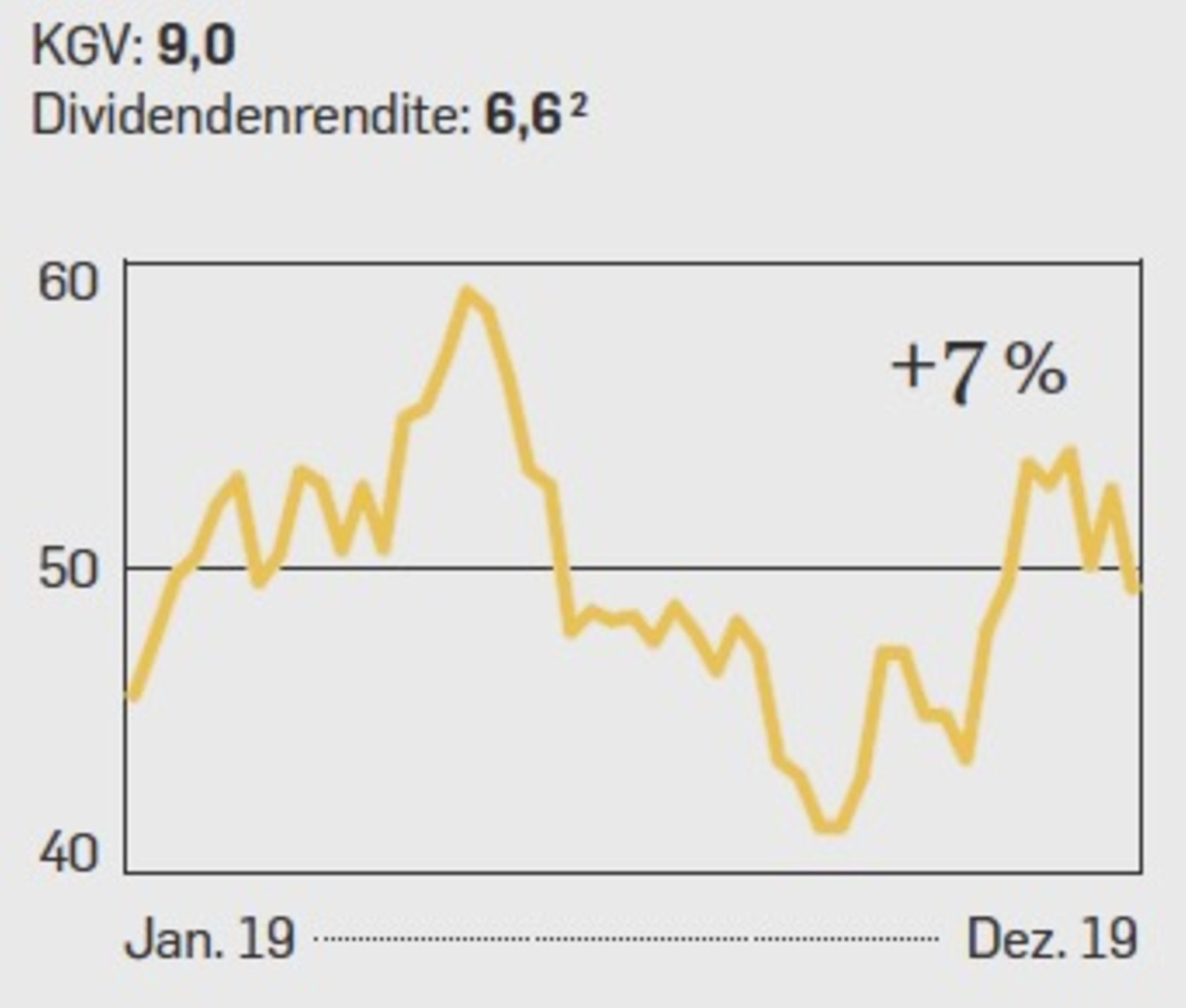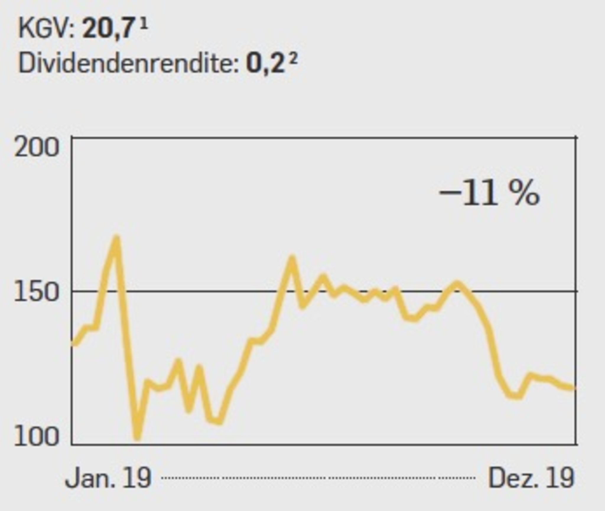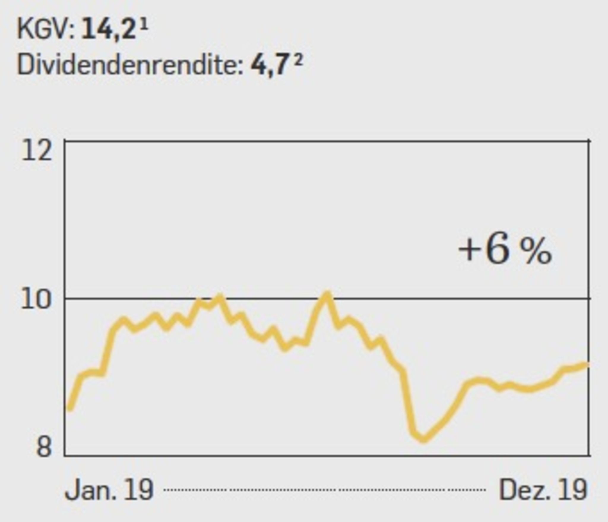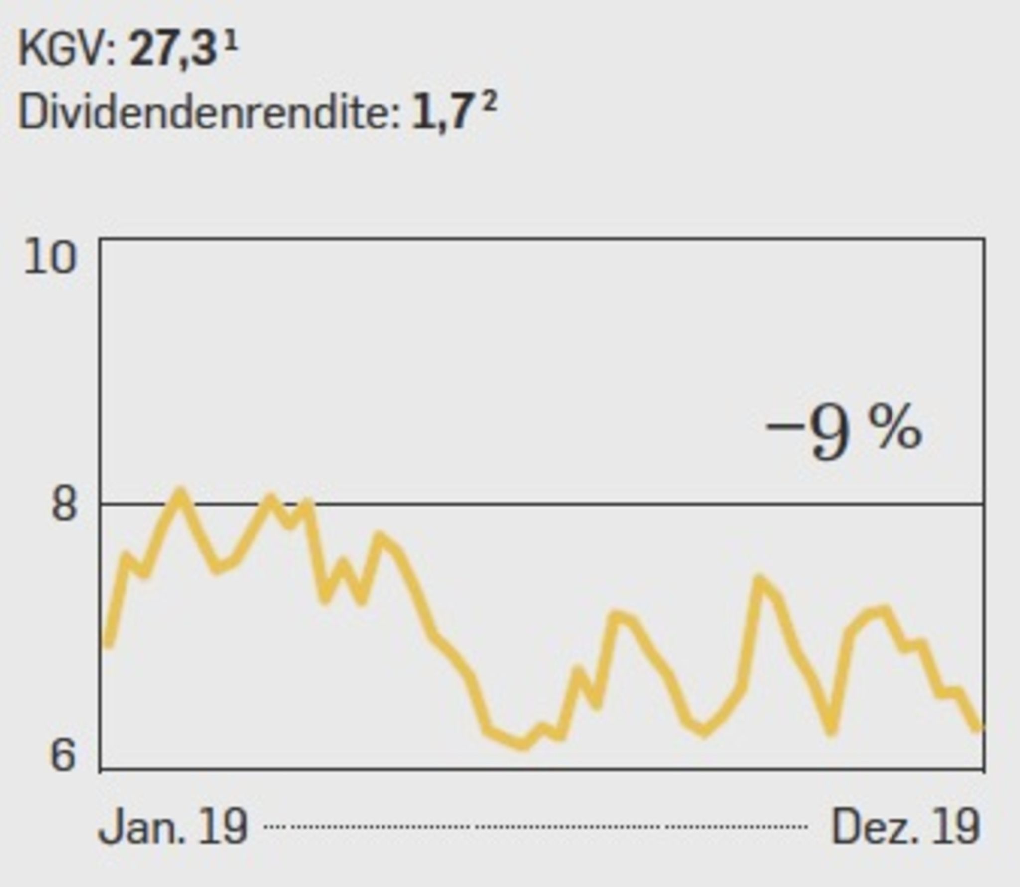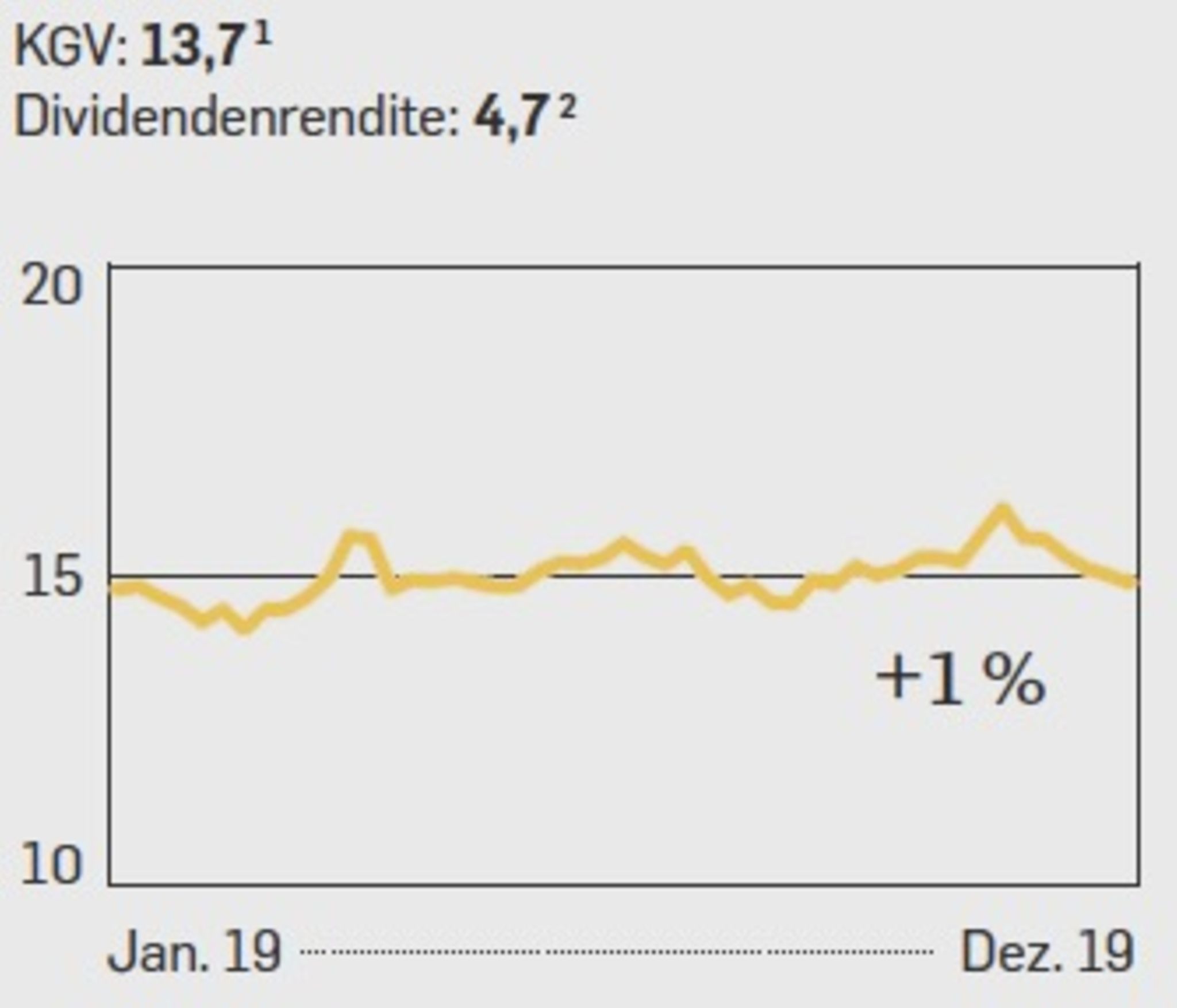 Sie gehörte zuletzt nicht zu den Überfliegern, und das Geschäft der Fluglinie bleibt schwierig. Der Wettbewerb durch Billigflieger wächst. Die Lufthansa hat zwar eine schlagkräftige Flotte und gute Gewinnmargen, aber zuletzt kämpfte sie eher mit dem eigenen Personal und dessen kostspieligen Streiks als mit der Konkurrenz. Zudem dürfte die allgegenwärtige CO₂-Debatte auch für die Lufthansa nicht folgenlos bleiben, wenn unter ihren Kunden die von Klimaaktivisten beschworene Flugscham um sich greift. Analysten sagen zudem, der Kurs der Airline sei in den Vorjahren etwas zu hoch aufgestiegen. Demnach wäre der Sinkflug des Jahres 2019 eher eine Rückkehr auf das normale Niveau. Immerhin sieht das Kurs-Buchwert-Verhältnis (KBV), also das Verhältnis von Börsenwert zu Eigenkapital, dadurch wieder gut aus, es liegt jetzt bei 1,0. Auf Zehnjahressicht aber waren es noch 1,14. Die Dividendenrendite von 4,7 kann sich zurzeit auch sehen lassen. Trotzdem ist die Aktie im Moment eher etwas für Optimisten.