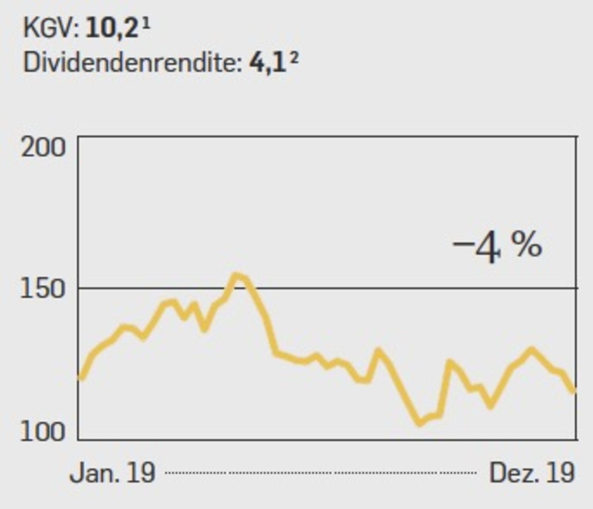Das einst so hochgelobte Investmentbanking gilt inzwischen als Auslaufmodell. Doch ob der Konzern mit der stärkeren Konzentration auf Vermögensverwaltung und Privatkundengeschäft bald wieder richtig Geld verdienen wird, darf man immer noch bezweifeln. Momentan wirken die Probleme sehr viel größer als die Erfolgsaussichten. Auch die Fundamentaldaten sprechen gegen die Deutsche Bank. Das erwartete Kurs-Gewinn-Verhältnis für 2020 liegt bei 27,3, die Dividendenrendite ist mau. Vom Kauf bleibt abzuraten.