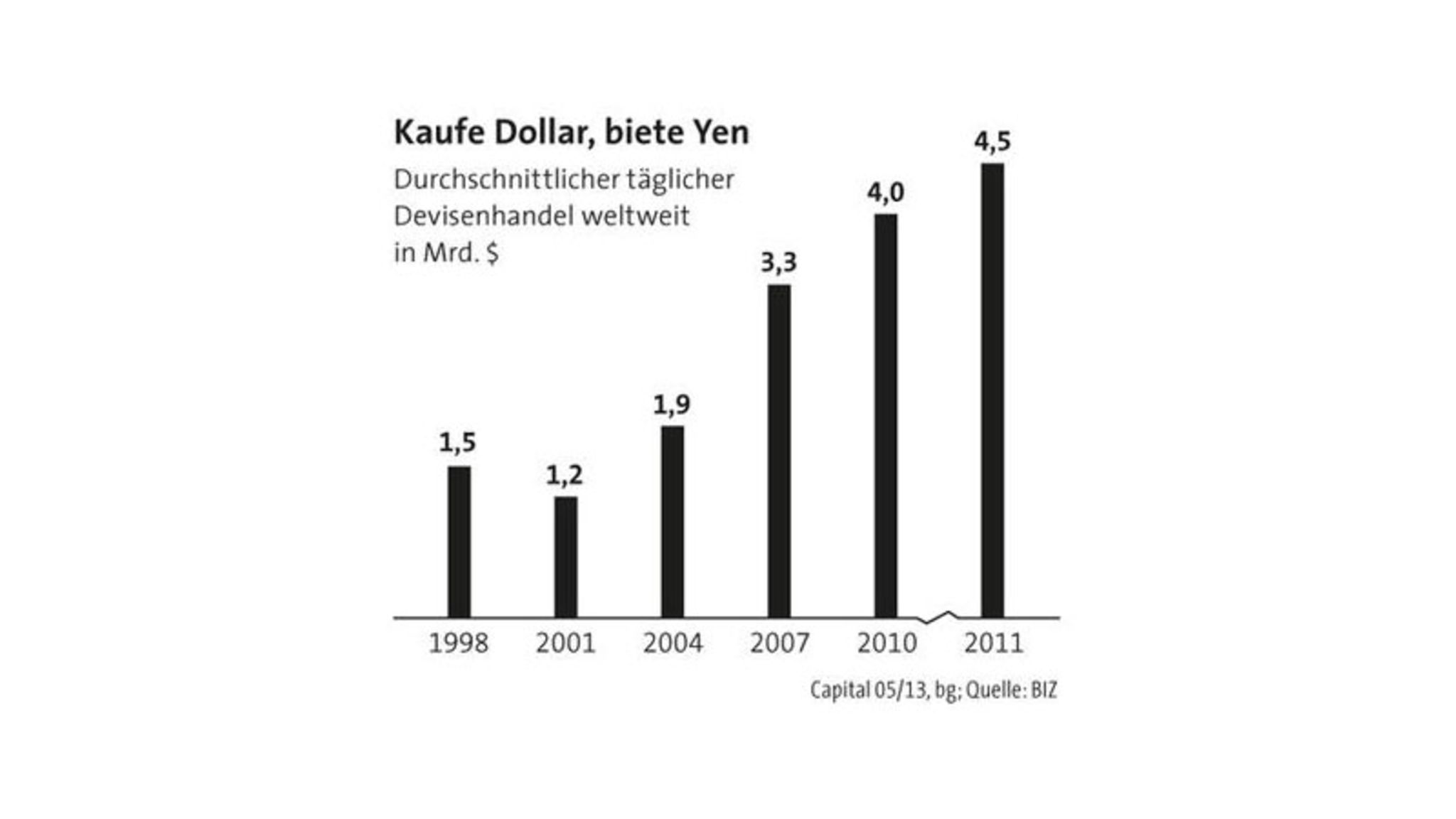 Sie alle suchen einen Trend im Markt. Geht etwa der Kurs zuerst nach oben, dann nach unten und dann wieder nach oben, ist das ein Zeichen, dass die Grundtendenz steigend ist. Andernfalls, so die Theorie, hätte der Kurs ja nach seiner Abwärtsbewegung nicht wieder nach oben gedreht. "Eins, zwei, drei nennen wir das", ruft Kofert. Klingt simpel und nach leichten Gewinnen. Binnen Wochen ist die Schule so zu einem viel beachteten Player im Devisengeschäft aufgestiegen.