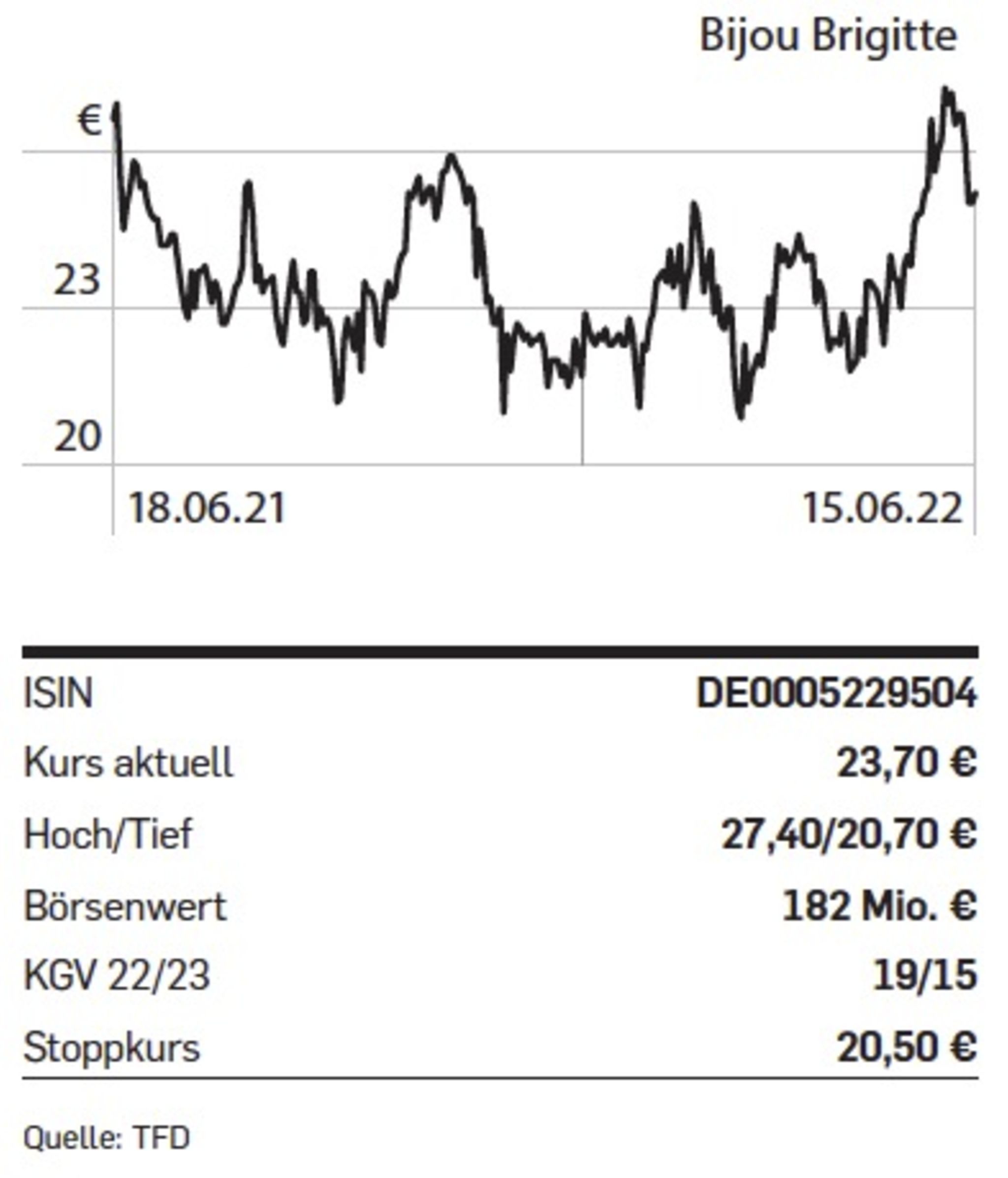 Die Erfolgsstory des Modeschmuckkonzerns Bijou Brigitte endete mit der Finanzkrise 2008. Von den Höchstkursen bei gut 250 Euro verlor der Nebenwert in der Spitze mehr als 92 Prozent. Nach einer Rosskur, die vor allem die Straffung des Filialnetzes beinhaltete, stabilisierte sich der Modeschmuckkonzern zunächst wieder, ehe die Pandemie Bijou Brigitte einen neuen Tiefschlag versetzte.