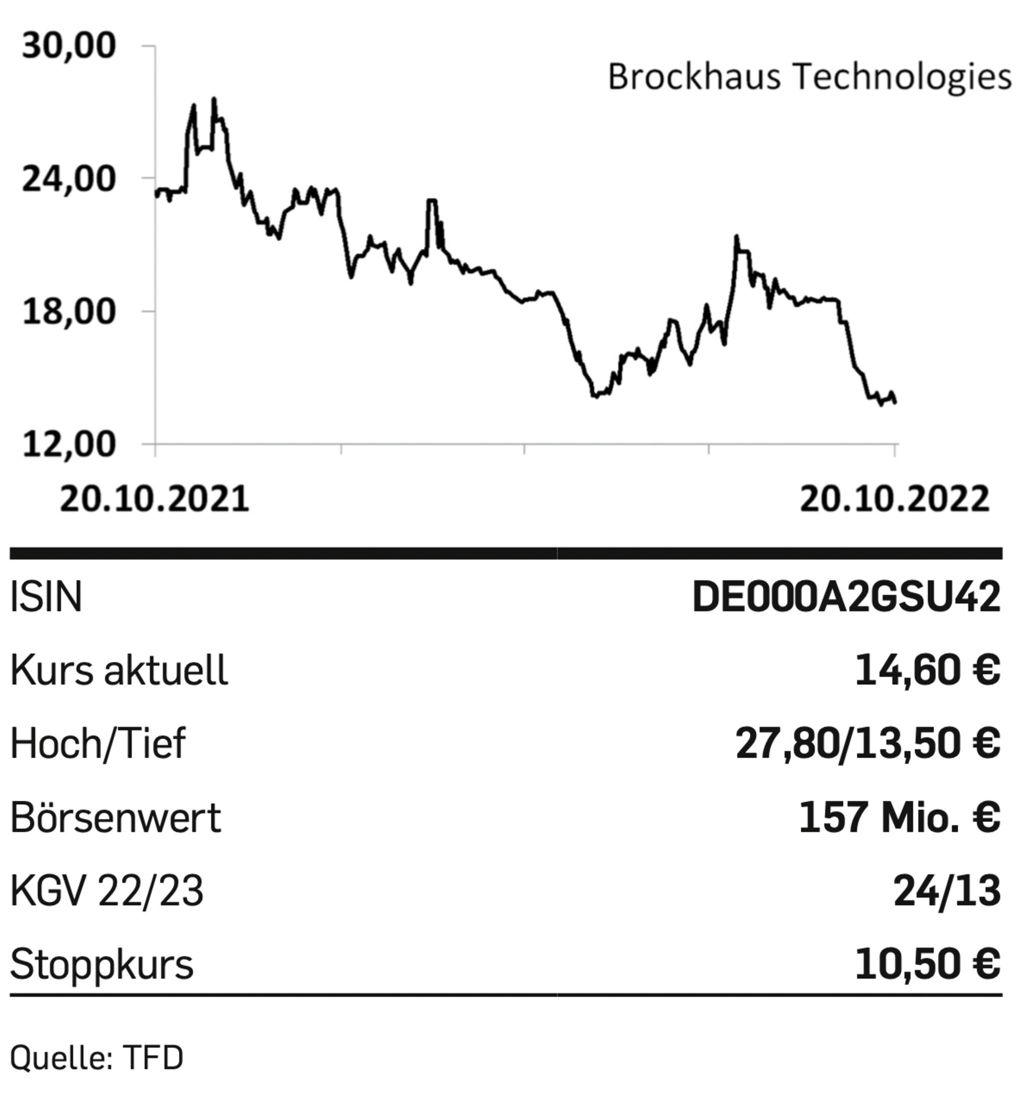 Selbst unter Berücksichtigung eines Holdingabschlags und der Schulden des Unternehmens kommen die Warburg-Experten auf einen fairen Wert von knapp 60 Euro je Brockhaus-Anteilschein. Dem steht ein Aktienkurs von nur knapp 15 Euro zugrunde – Relationen, die eine Aufnahme des Nebenwerts in unser Tradingdepot nahelegen.