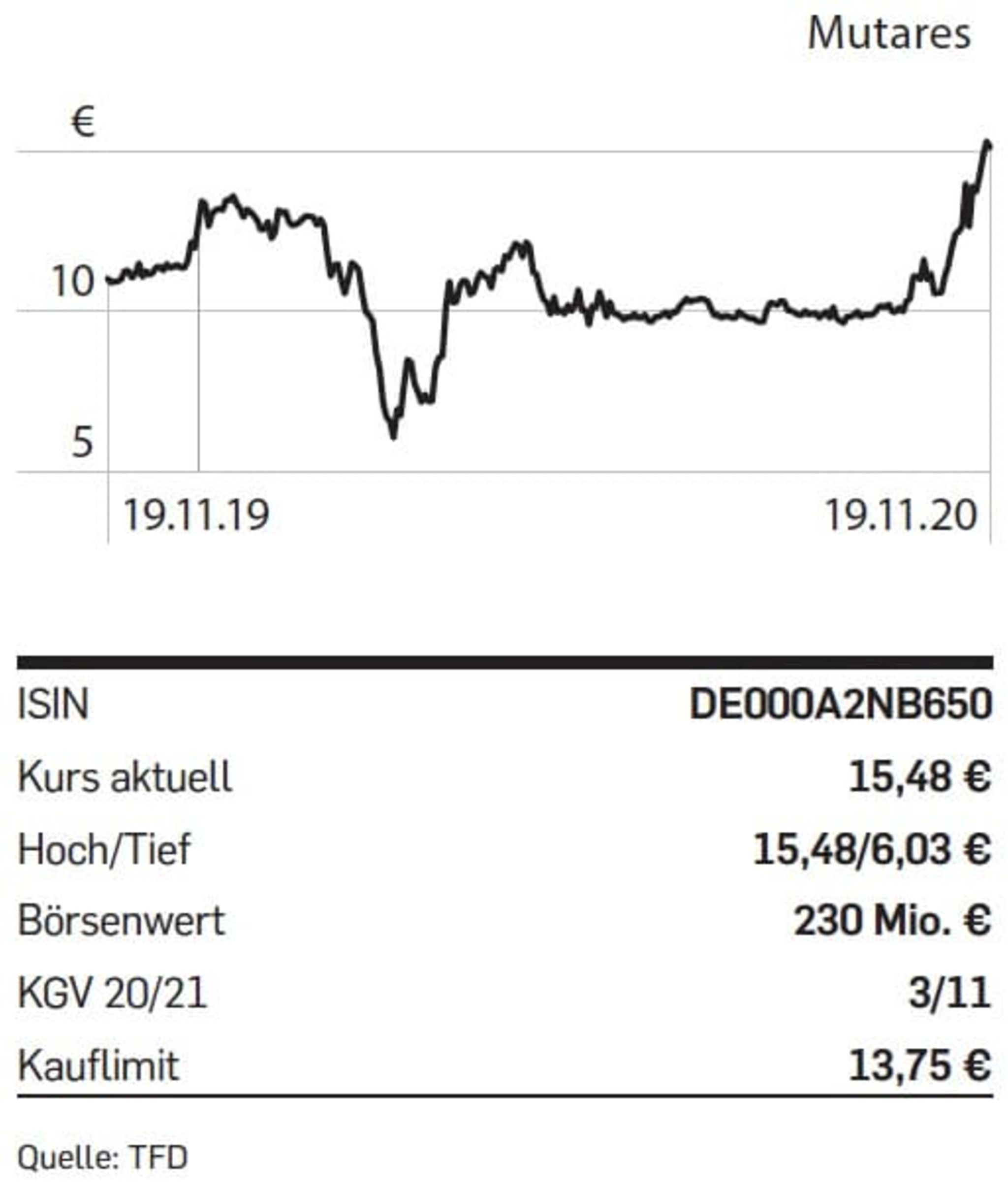 Noch nicht berücksichtigt in den Zahlen ist der neueste Deal: Mutares hat eine Absichtserklärung zum Verkauf ihres 80-prozentigen Anteils an der Nexive-Gruppe unterzeichnet. Käufer ist die Poste Italiane. Die Transaktion soll bis Januar 2021 abgeschlossen werden. Für die erst im Juli 2020 übernommenen Brief- und Paketdienstleister wäre das ein Turnaround samt Exit in Rekordzeit.