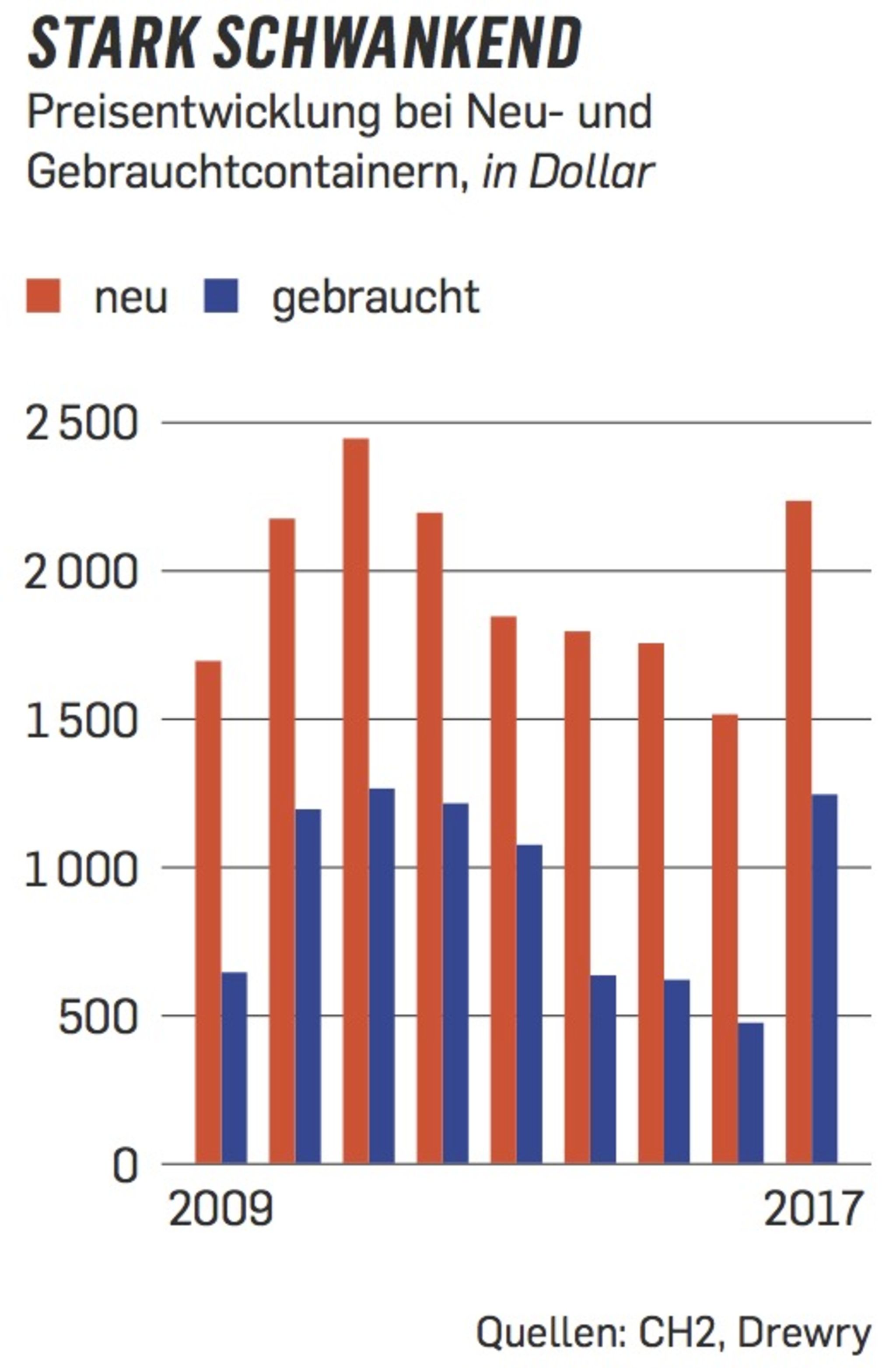Problemlos? Das galt vielleicht für die Zahlungen an Anleger. Auf dem Containermarkt indes trübte sich das Vermietungsgeschäft ab 2012 zunehmend ein. Wegen sinkender Stahlpreise und chinesischer Überkapazitäten stürzte der Preis für neue Standardcontainer mit 20 Fuß Länge laut Zahlen des Forschungsinstituts Drewry innerhalb von fünf Jahren von knapp 2500 auf 1500 Dollar ab. Entsprechend brachen auch die Anschaffungskosten für Gebrauchtcontainer zwischen 2011 und 2016 um 70 Prozent ein – und die Mietpreise um rund 40 Prozent. Anbieter wie P&R gerieten damit gleich von zwei Seiten in die Zange: Während sie am Markt geringere Mieterlöse erzielten, erwiesen sich gleichzeitig die Rückkaufpreise für Gebrauchtcontainer, die sie ihren Anlegern für auslaufende Investments in Aussicht gestellt hatten, als zu optimistisch kalkuliert.