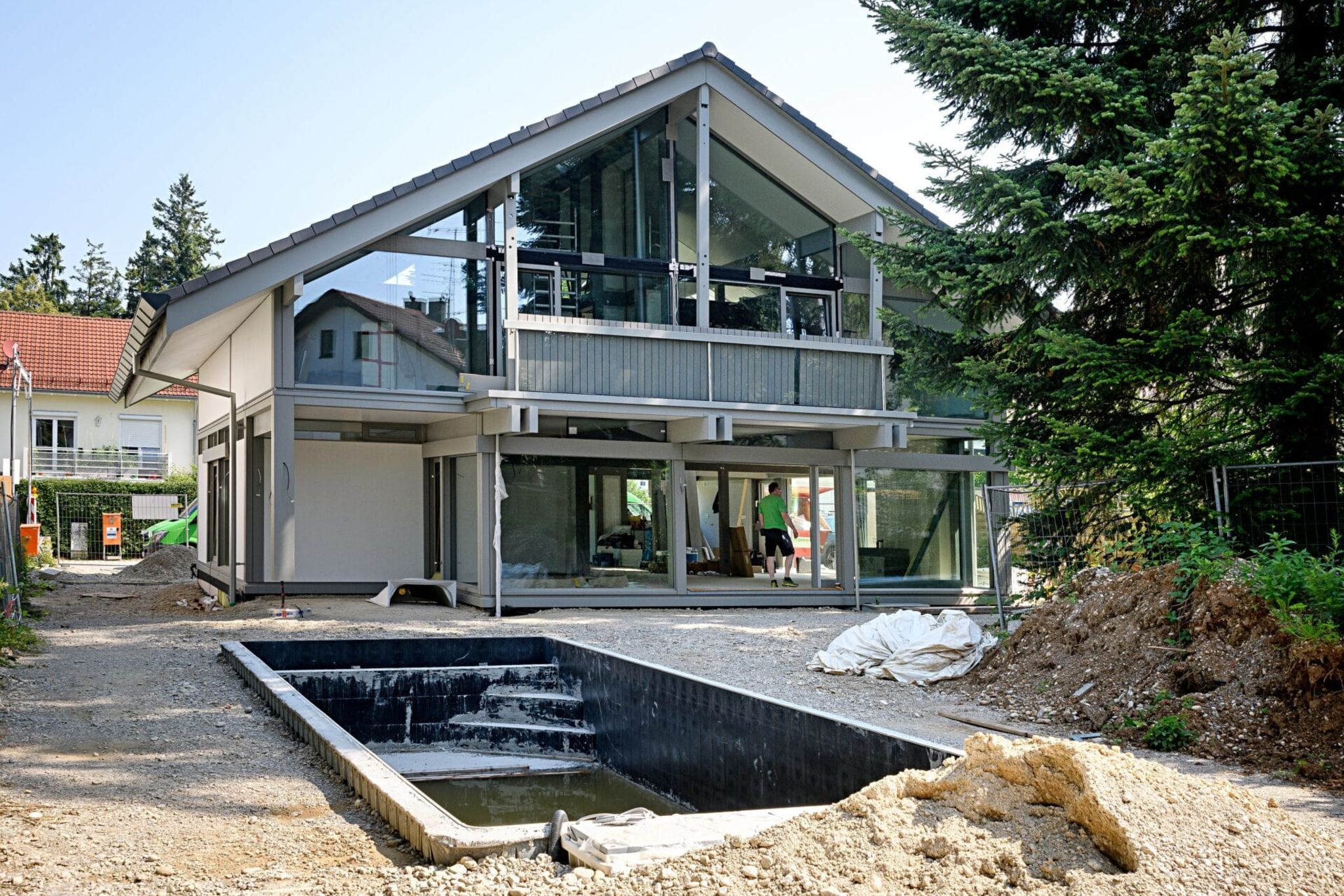 Wasserwaage, Winkelmaß, Zollstock und eine Rolle Kreppband – mit dieser Ausrüstung läuft Tobias Beuler durch das neue Fertighaus in Vaterstetten östlich von München. Viel Glas, viel Holz, viel Platz: 340 Quadratmeter Wohnfläche sind hier auf zwei Stockwerke und den Keller verteilt. Eben haben die Installateure zusammengepackt, im Erdgeschoss werkeln noch die Maler. Beuler ist unabhängiger Bausachverständiger, und die Gerätschaften sowie sein gutes Auge helfen ihm nun dabei festzustellen, ob die Handwerker ordentliche Arbeit geleistet haben.