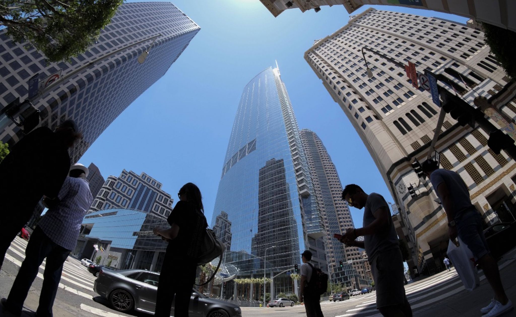 Spektakulär wirkt der Wolkenkratzer besonders, wenn er nachts mit bunter Reklame beleuchtet ist. Das Wilshire Grand Center wuchs von 2012 bis 2017 für 1,2 Mrd. Dollar in Los Angeles auf 355 Meter hoch. Etwa ein Drittel der 73 Etagen im Finanzdistrikt sind mit Büroräumen belegt. Ein Luxushotel erstreckt sich auf 900 Zimmer. Der Bau gilt als besonders nachhaltig, da innovative Beleuchtungs- und Klimasysteme Strom sparen und Regenwasserauffangsysteme den Wasserverbrauch um ein Drittel senken. Für die Standfestigkeit in dem erdbebengefährdeten Gebiet sorgen besondere diagonale Streben.