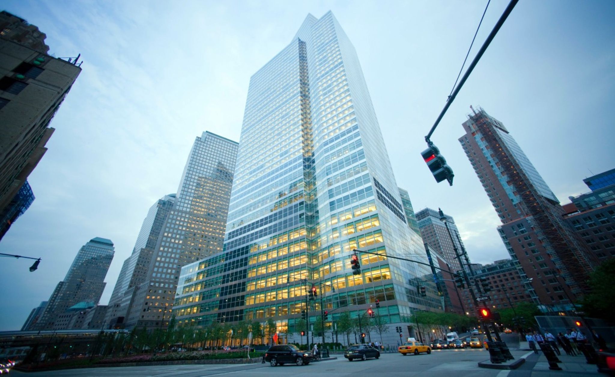 West Street 200 lautet die noble Adresse der zweitgrößten Investmentbank der Welt – fußläufig zum Ground Zero und dem One World Trade Center in New York. Die opulente Zentrale im Herzen der Metropole wurde im Jahr 2010 festgestellt und kostete 2,1 Mrd. Dollar. Die Fassade des Büroturms mit 44 Etagen wurde komplett mit Glas gestaltet. Architektonisch auffällig: Von Osten aus gesehen spiegelt eine abgerundete Fassade den Hudson River, von der Manhattan zugewandten Seite zeigt das Gebäude Ecken und Kanten.