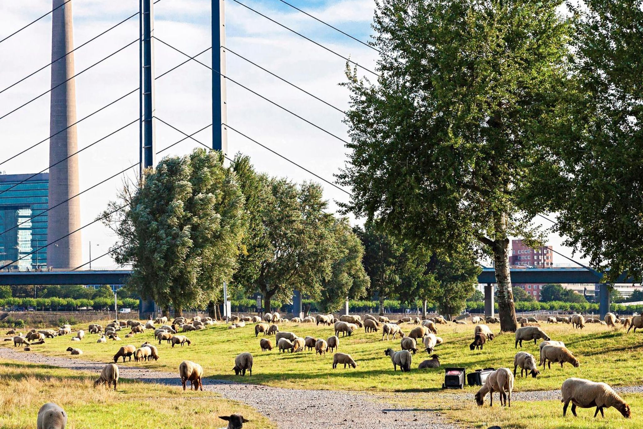 Der Rheinblick: unverbaubar. Die Lage: exzellent. Und die Verkehrsanbindung: könnte kaum besser sein. Die „Green Bridge“, die Anfang dieses Jahres vom Architekturbüro RKW und dem Immobilienunternehmen JLL skizziert wurde, ist eine Vision, die irgendwann einmal die Theodor-Heuss-Brücke, eine zentrale Rheinquerung in Düsseldorf, ersetzen könnte. Das Konzept verlegt die Fahrspuren in eine geschlossene Röhre und schafft so eine bewohnbare Brücke mit 400 Einheiten, Hotel und einem durchgehenden Landschaftspark samt Radschnellweg.