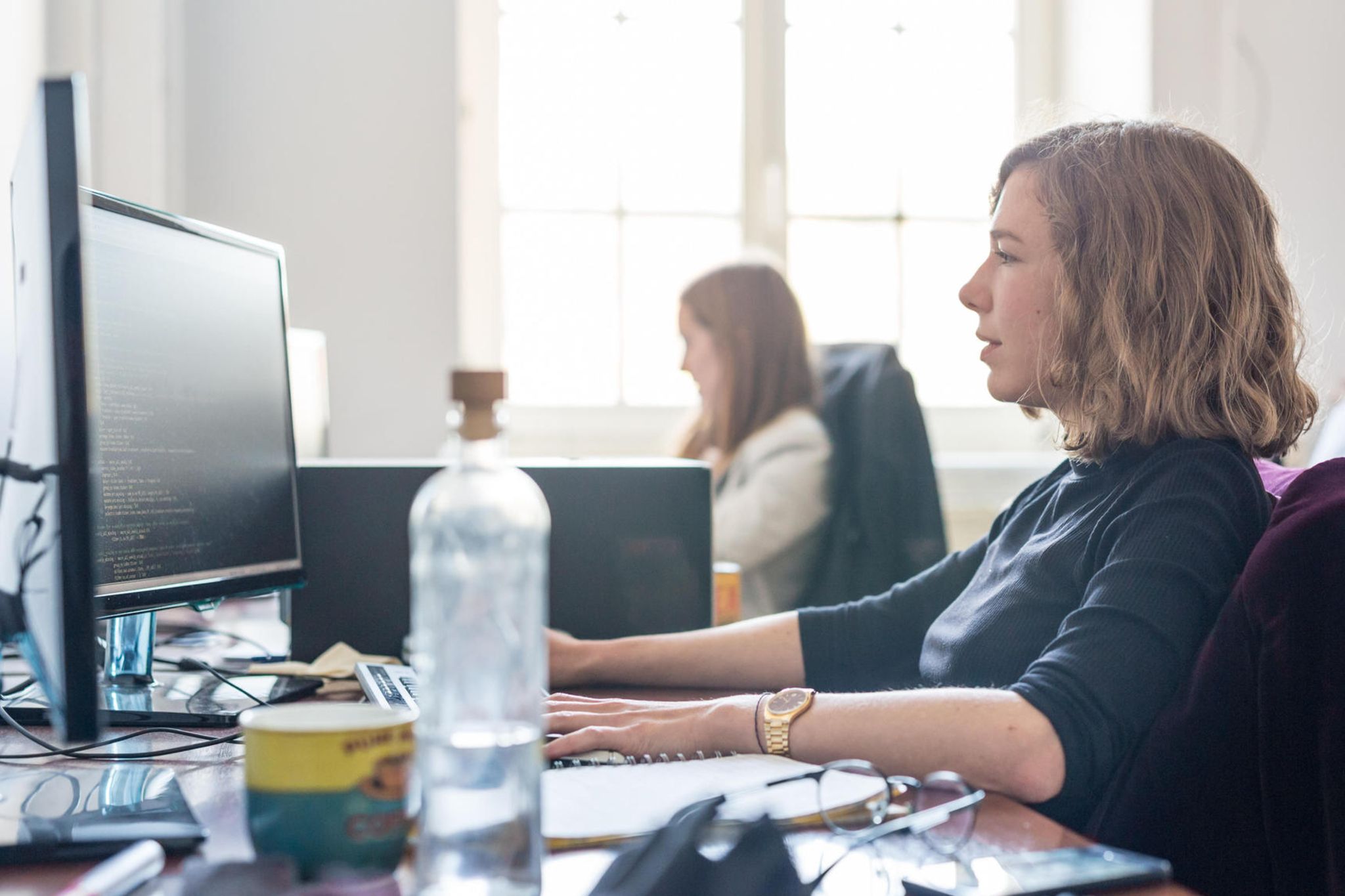 Der Private-Equity-Investor Apax, dem Solita gehört, gibt allen Kolleginnen und Kollegen die Möglichkeit, Anteile am Unternehmen zu erwerben, also selber Investor oder Investorin zu werden und so an der Wertentwicklung des Unternehmens zu partizipieren. Wir sind nicht an der Börse. Aber angenommen, Solita ginge an die Börse und der Wert würde steigen, dann würden die Beschäftigten, die sich beteiligt haben, profitieren.