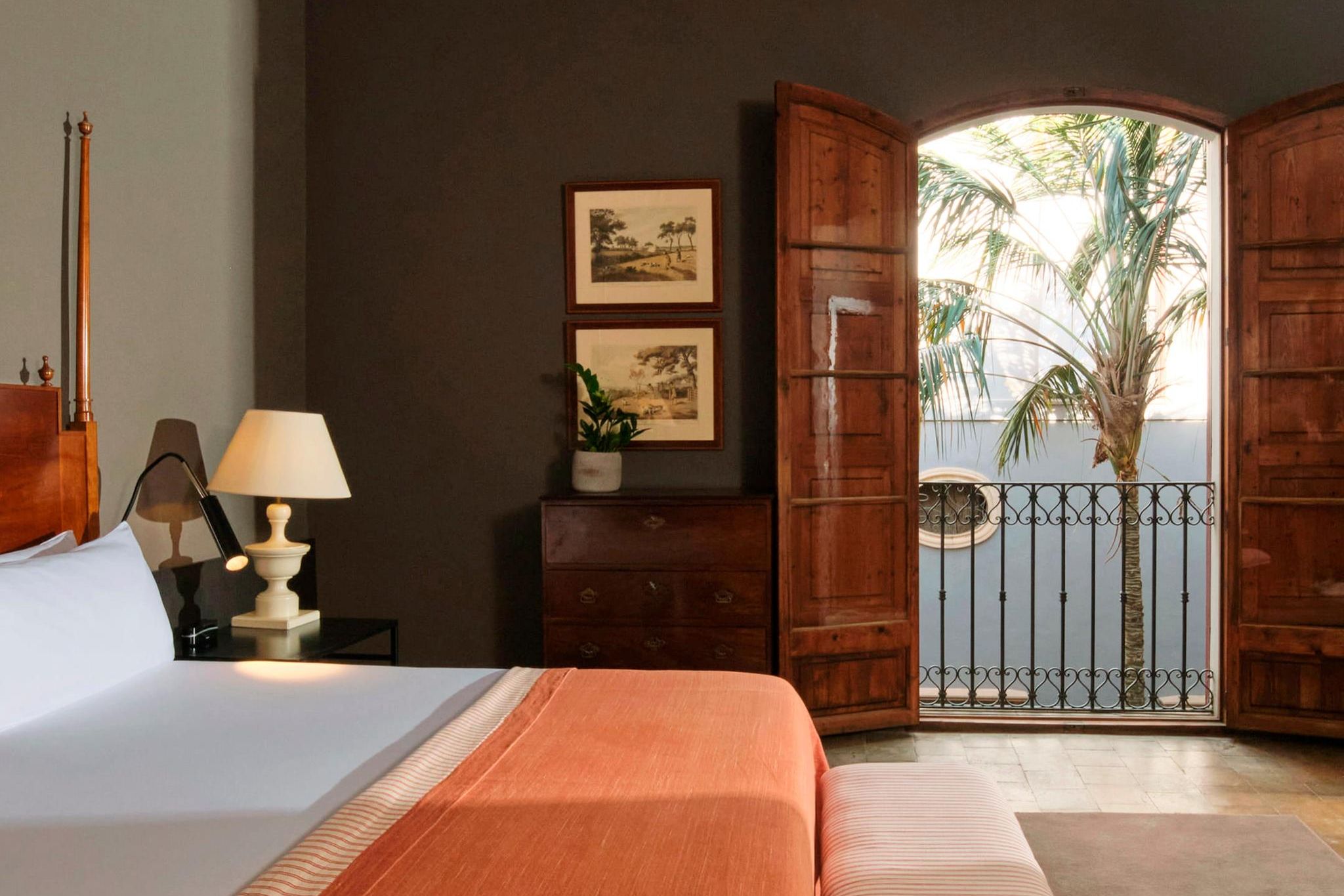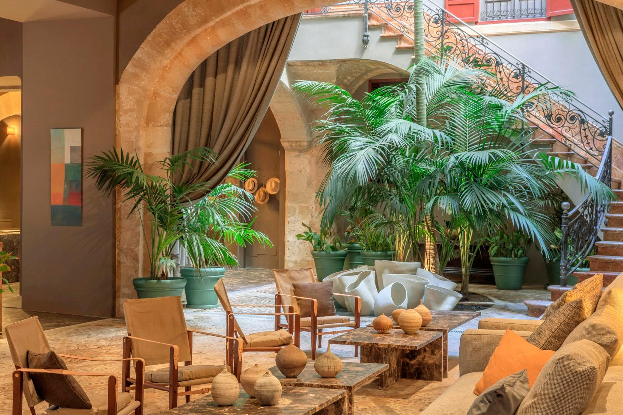 Wenn ich es nicht besser wüsste, ich würde prompt an jener unscheinbaren Holztür vorbeilaufen, hinter der sich eines der schönsten Hotels Spaniens verbirgt. Das Can Cera befindet sich in der Carrer de Sant Francesc in der bezaubernden Altstadt von Palma, geprägt von Steinwegen und Fassaden aus der Renaissance. Früher residierten in diesem Viertel adlige Familien und wohlhabende Mallorquiner in ihren prunkvollen Palais. Eines dieser historischen Anwesen, ein wahres architektonisches Kunstwerk, ist nun ein luxuriöses Boutiquehotel und empfängt seine Gäste in 14 Zimmern und Suiten.