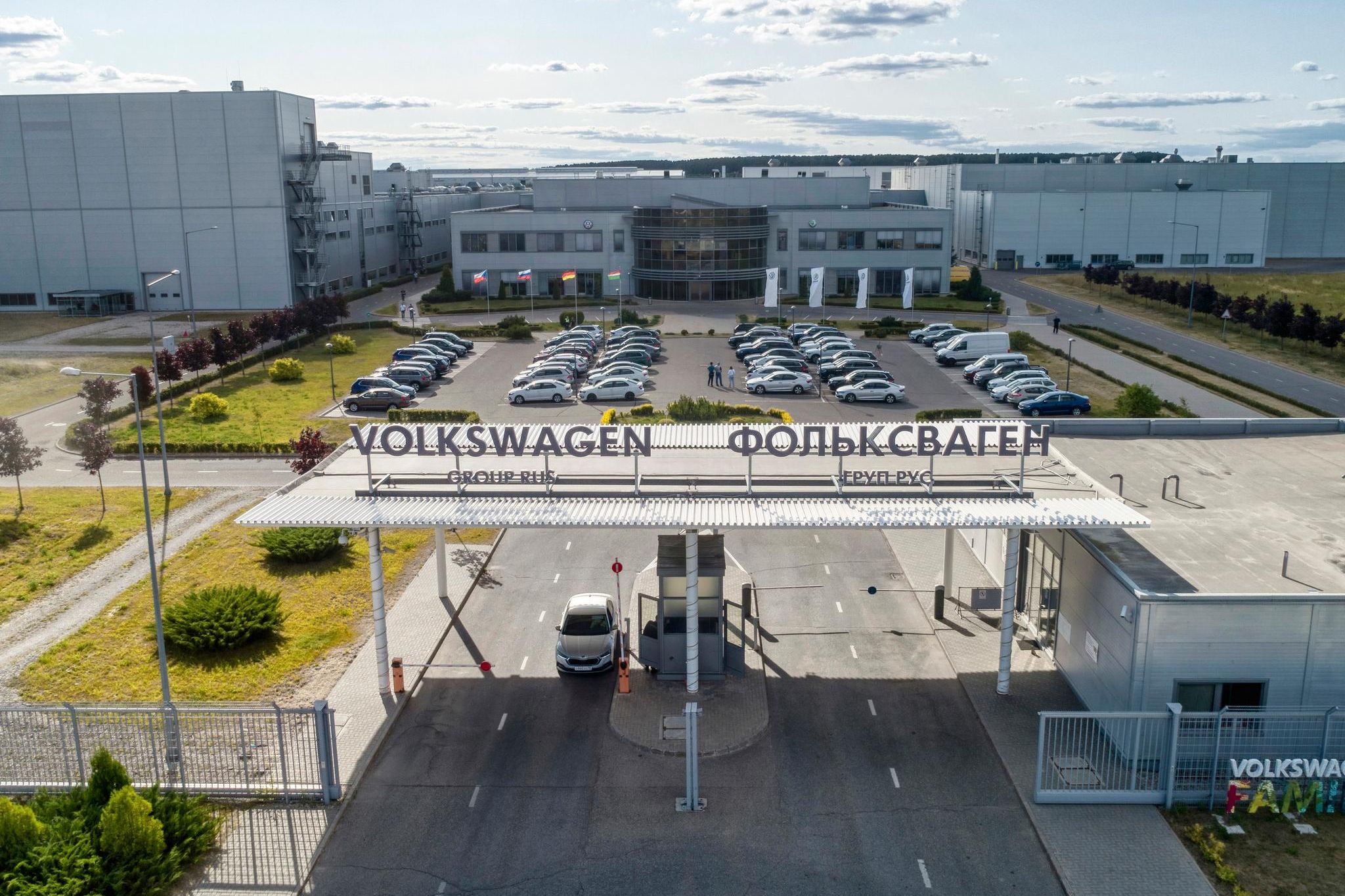 Über dem schmucklosen Haupttor mit dem Wachhäuschen und dem Wellblechdach prangt noch immer der doppelte Schriftzug in lateinischen und kyrillischen Lettern, als ob alles beim Alten geblieben sei. Doch die orangen Schranken, die sich sonst Tag und Nacht für die 4000 Beschäftigten im Schichtbetrieb heben und senken, passieren an diesem Junitag nur noch ein paar Dutzend Autos.
