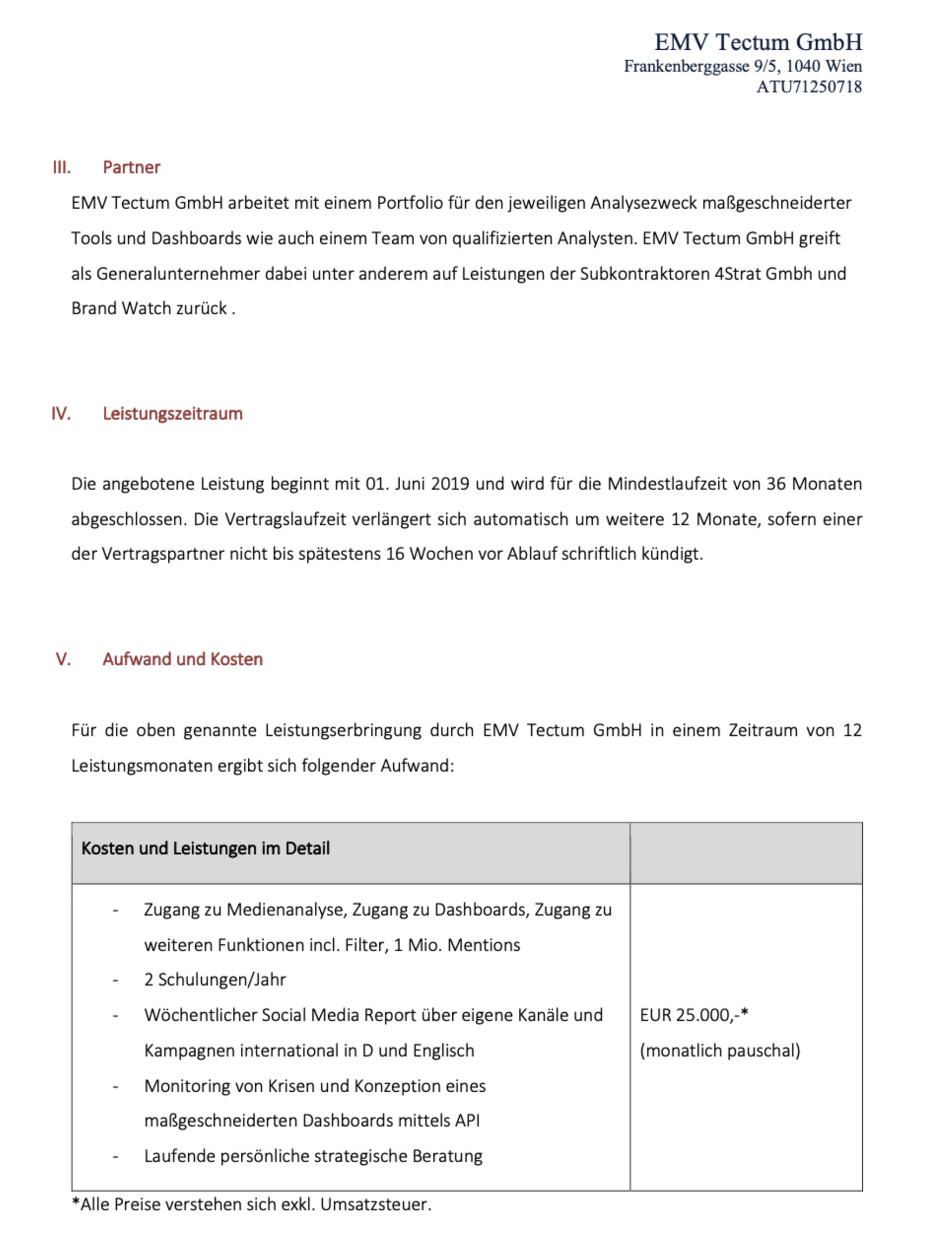 So findet sich die Firma 4strat etwa auch in einem Vertragsentwurf, den der österreichische Repuco-Berater – damals 4strat-Miteigentümer – im April 2019 an Marsalek übermittelte. Zuvor hatte die „Financial Times“ wiederholt massive Betrugsvorwürfe gegen Wirecard erhoben, der Zahlungskonzern setzte vieles daran, gegen Kritiker vorzugehen – im Internet, aber auch mit Überwachungsaktionen in der Offline-Welt. Verantwortlich für diese „Feindaufklärung“, wie er es selbst in jener Zeit in einer Aussage bei der Münchner Staatsanwaltschaft nannte, war Marsalek. In seinem Angebot für Marsalek offerierte der Berater seine Dienste für „Professional Media-Monitoring und Data-Driven Crisis Management“´ – für 25.000 Euro im Monat, eine Summe, die für Medienanalysen extrem hoch erscheint. Laut dem Vertragsentwurf, der Capital vorliegt, sollte 4strat dabei als „Subkontraktor“ mitwirken – während sich das Unternehmen zeitgleich schon um einen sensiblen Auftrag bei der Bundeswehr bemühte.