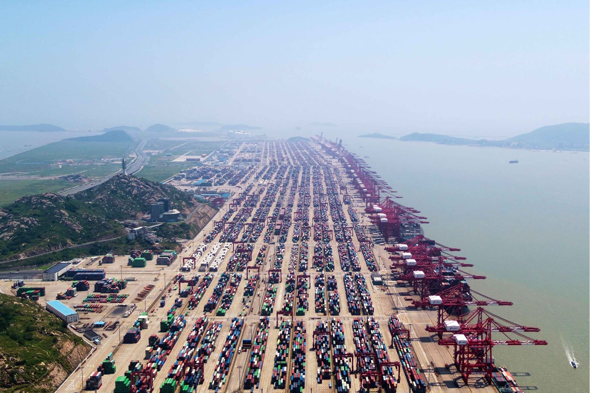 Der internationale Containerhafen von Schanghai ist ein bizarrer Ort. Da führt eine Straße von der 23-Millionen-Stadt scheinbar ins offene Meer hinaus und endet auf einer Felseninsel. Der Himmel hängt tief über dem immer trüben Gelben Meer. Die einzigen Farben kommen von Abertausenden Container, die hier ent- und beladen werden – und die werden gerade knapp.