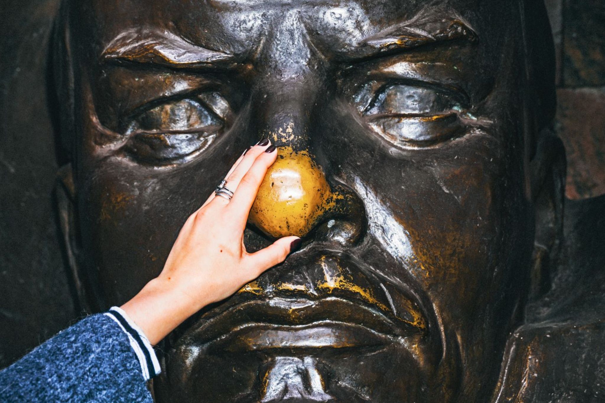 Ein Passant reibt in Minsk die Nase eines Lenin-Denkmals – das soll Glück bringen