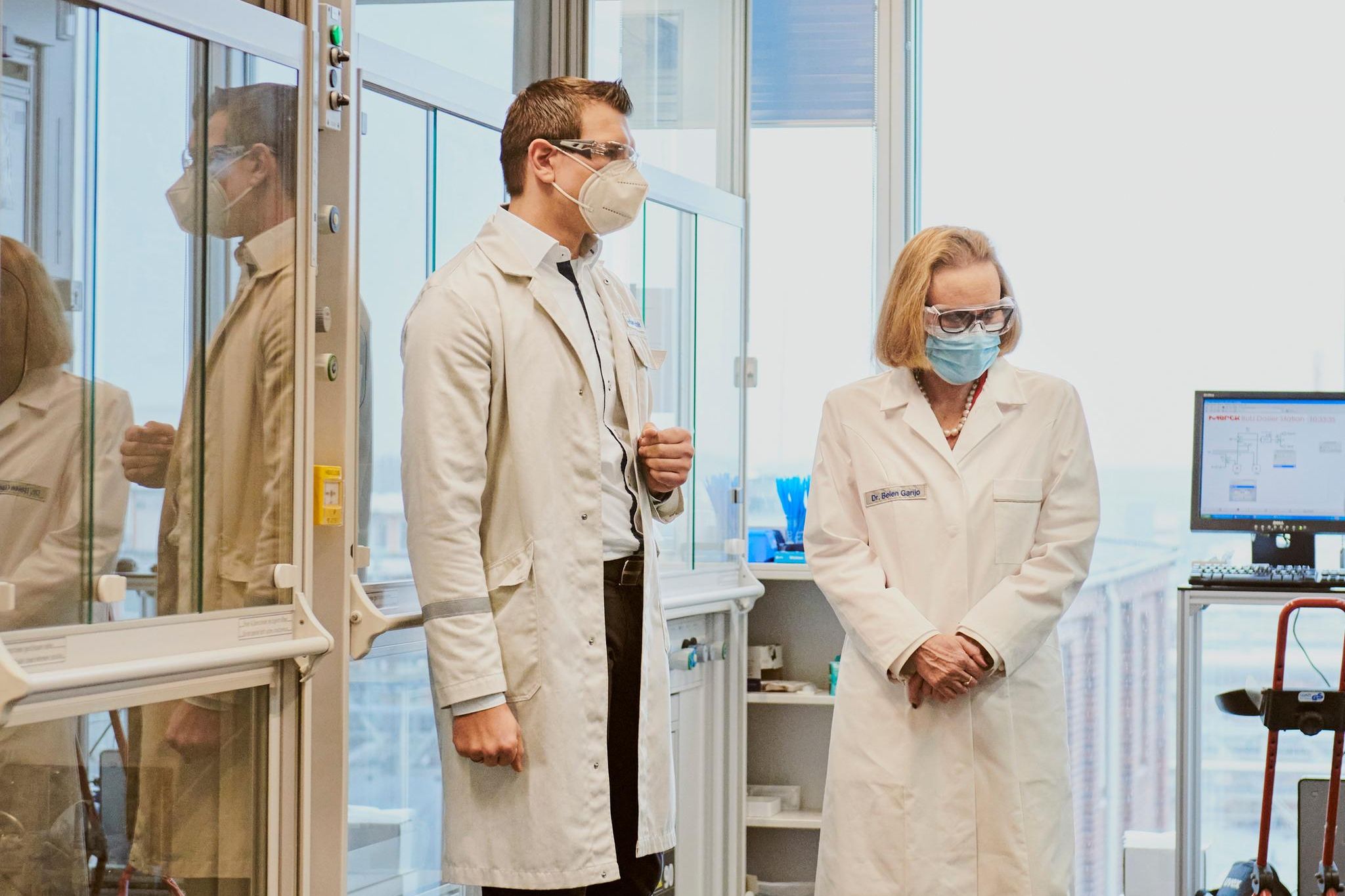 10.30 Uhr: Der Merck-Laborleiter erklärt, wie die Pilotversuche laufen. Belén ist studierte Ärztin und hat selbst lange in der Forschung gearbeitet. Gespräche mit Wissenschaftlern sind ihr wichtig, sie reserviert sich Zeit dafür. Der Aufstieg an die Spitze von Merck gelang ihr wegen ihrer Erfolge in der Pharmasparte, die sie ab 2015 leitete.