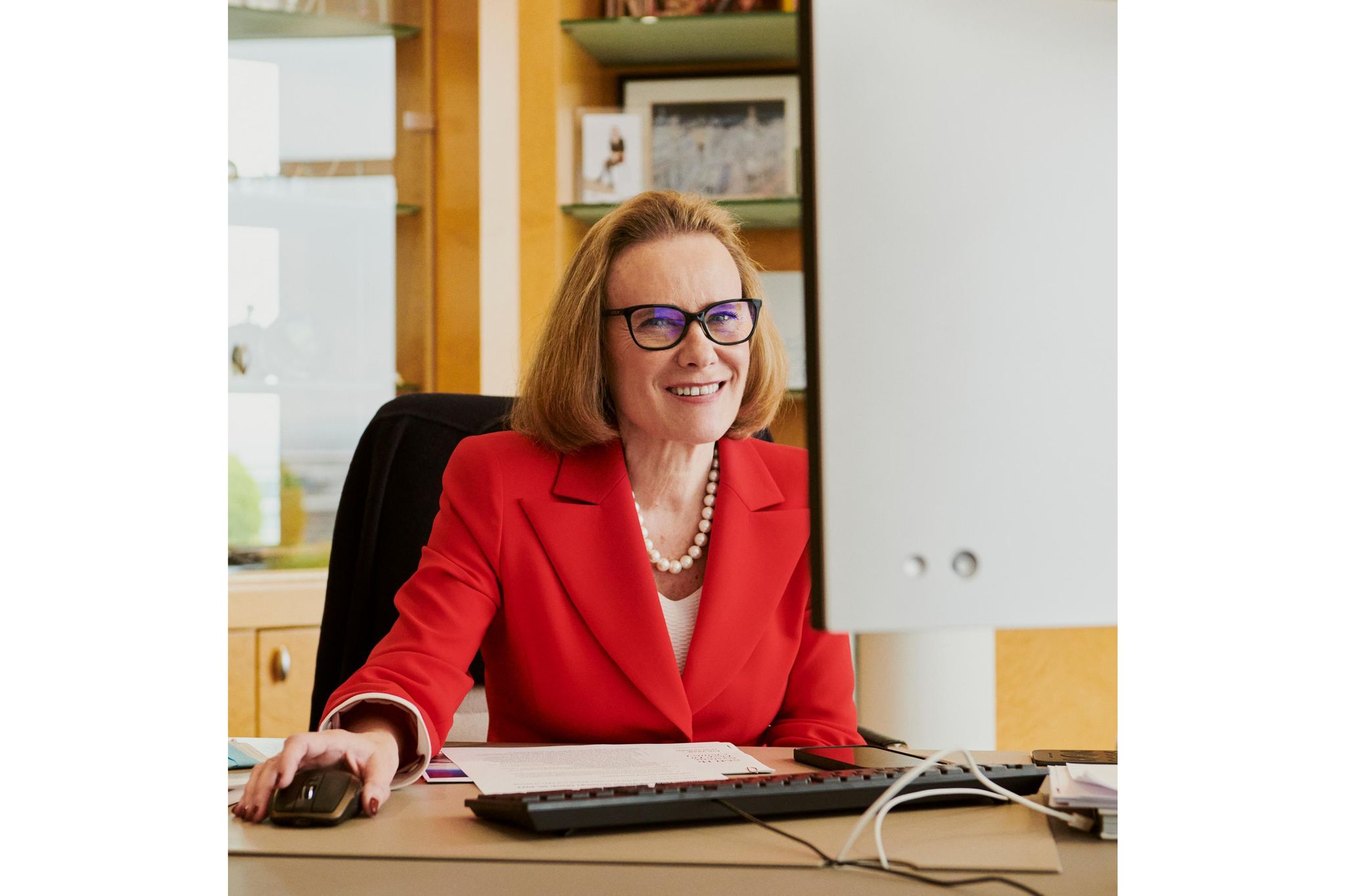 8.45 Uhr: Mit ihrer Assistentin geht sie durch den Tag – en español: Wen trifft sie wo? Sind alle Unterlagen vollständig? Welche Calls stehen an? Sie reist weniger als früher, gerade war sie im US-Werk, das erste Mal als CEO. Seit Mai 2021 ist sie auf ihrem Posten. Sie hat einen neuen Schreibtisch angeschafft, der alte war ihr zu groß.
