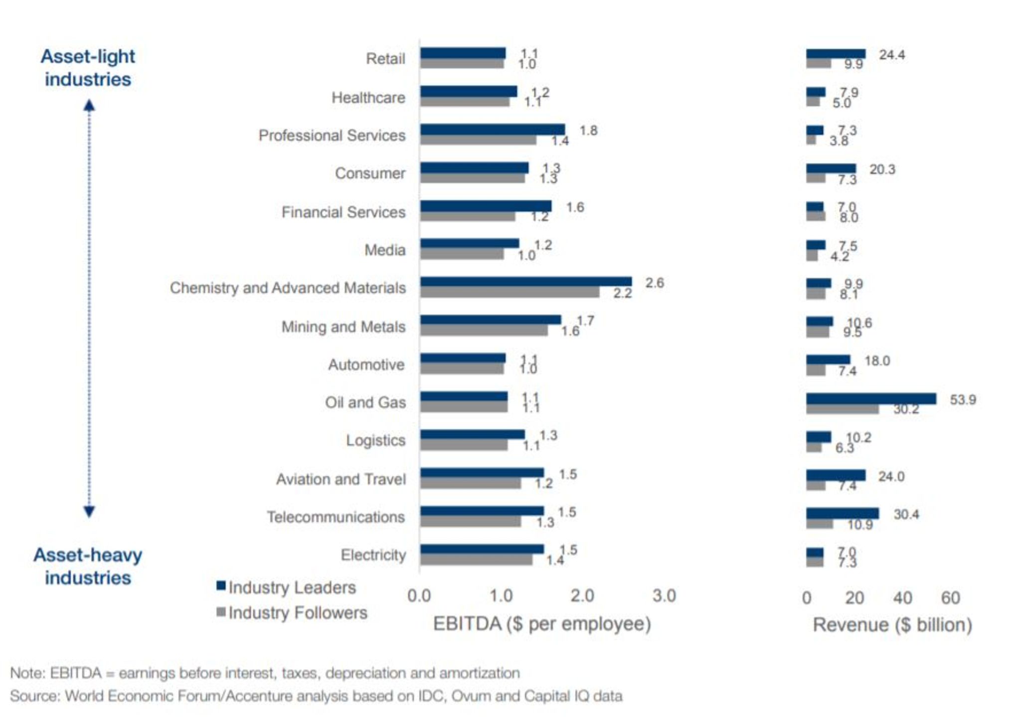 Allerdings ziehen Unternehmen sehr unterschiedliche Nutzen daraus. In jeder Branche kristallisiere sich meist ein oberes Fünftel heraus, das aus Produktivitätssteigerungen dank digitaler Technologien den größten Mehrwert schöpfe, fand eine neue Studie des World Economic Forum heraus . Andere in der Branche drohten abgehängt zu werden. In einer Zwei-Klassen-Gesellschaft könnten insbesondere kleine und mittlere Unternehmen im Wettbewerb die Verlierer sein.
