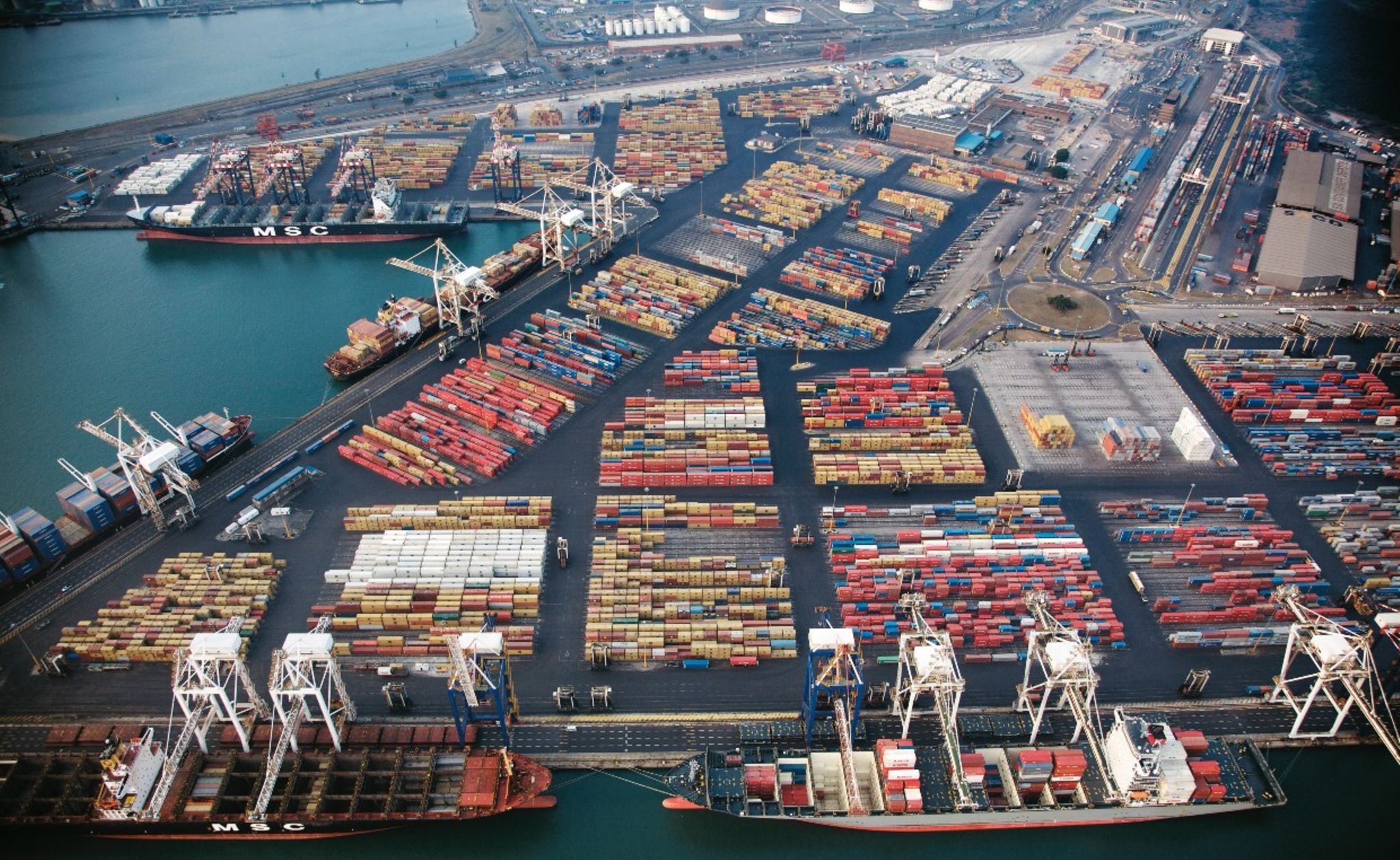 Die Proteste treffen Südafrika in einer wirtschaftlich hoch angespannten Lage und der dritten Corona-Welle. Plünderer zerstören Eigentum und stehlen Waren, zünden Gebäude an und blockieren Autobahnen. Angefangen hat das mit politischen Protesten gegen die Strafverfolgung des Ex-Präsidenten Jacob Zuma wegen Korruption. Inzwischen herrscht reine Gesetzlosigkeit im nordöstlichen Gauteng und dem östlichen Kwazulu-Natal, wo der Provinz-Premier den Schaden auf 1 Mrd. Rand (60 Mio. Euro) schätzt. Im Großraum Durban brannten mehrere Warenhäuser. Vom dortigen Hafen (Bild) führt die Autobahn N3 – eine wichtige Versorgungsader – ins Industriezentrum rund um Johannesburg. Präsident Cyril Ramaphosa fürchtet Lieferengpässe und Lebensmittelknappheit.
